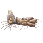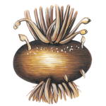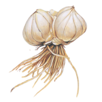 אברים אוגרי מזון הנושאים בחלקם העליון גבעול תת קרקעי קצר.