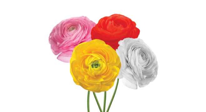 Ranunculus is a tuberous-rooted plant boasting brilliantly colored flowers adorned with multiple layers of delicate, crepe paper-thin petals. Ranunculus produce masses of very long-lasting blossoms in a rainbow of colors. Whether treated as perennials or annuals, Ranunculus add brilliance to the garden and make magnificent bouquets with a vase life of at least 7 days.